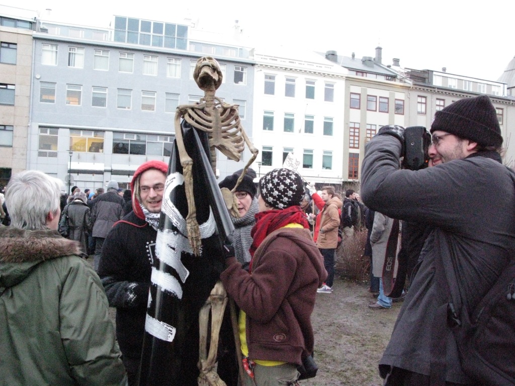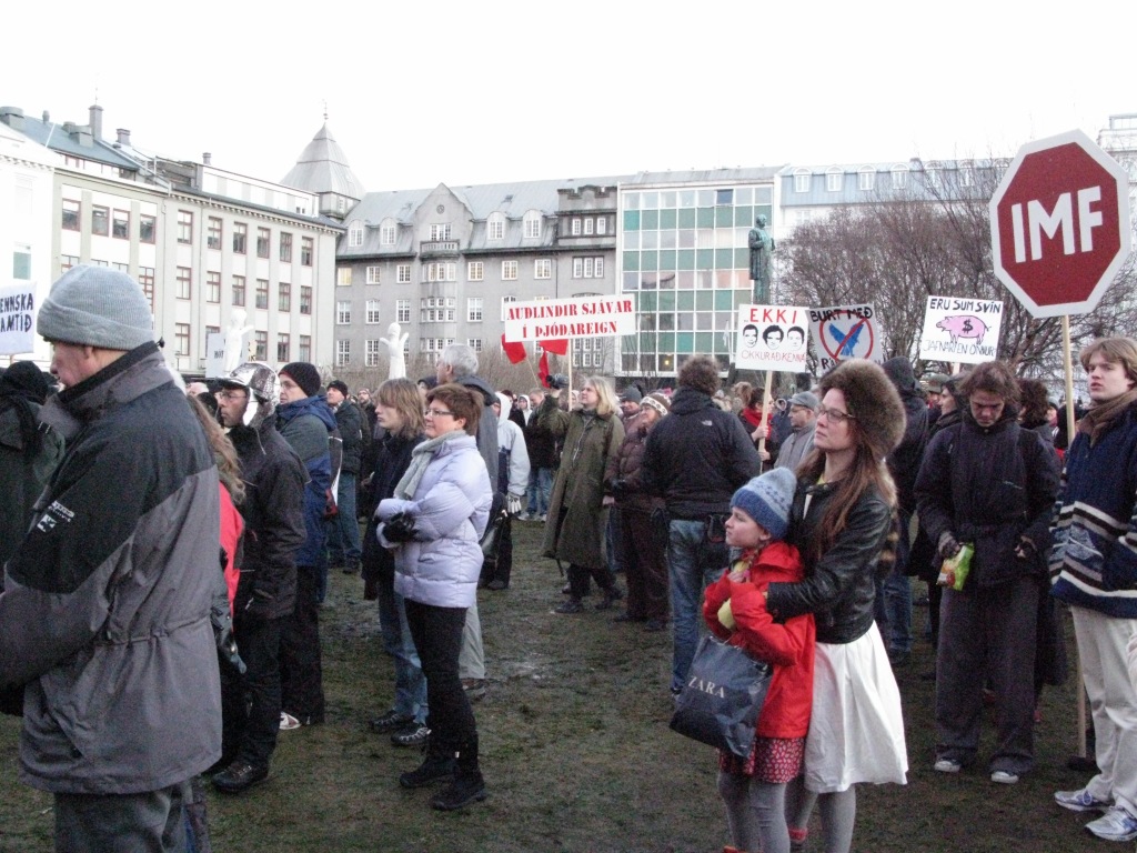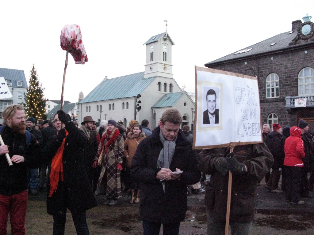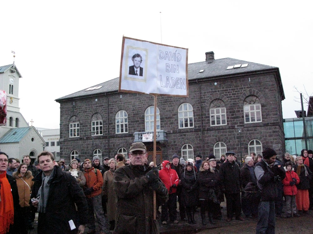 Den akutte økonomiske situasjonen har fått islendingene til å demonstrere for regjeringens snarlige avgang. På et folkemøte i hjertet av Reykjavik sist lørdag florerte plakater med krav om hodene til den norskættede statsministeren Geir Haarde og sentralbanksjefen Davið Oddsson.
